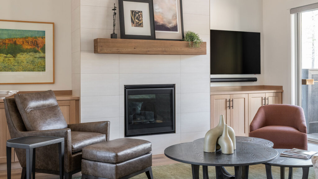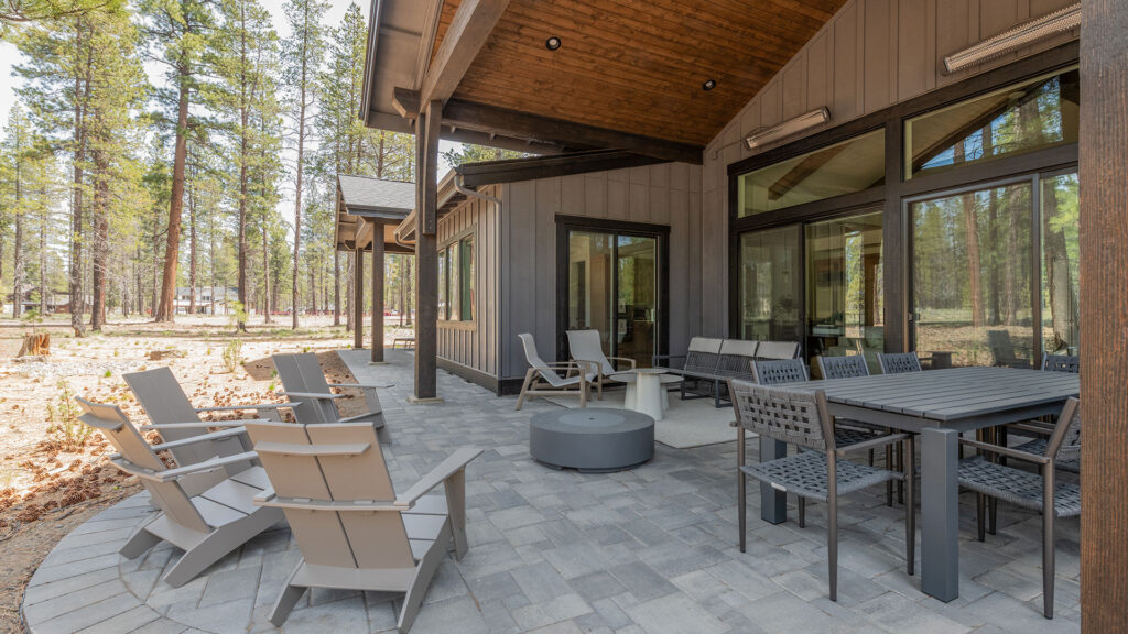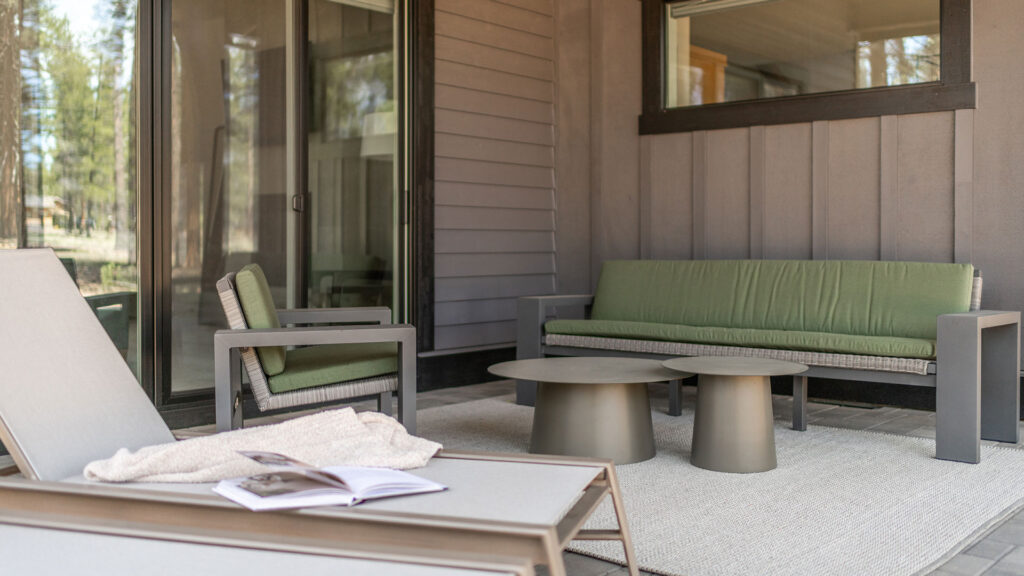 Outside, we encourage year-round gathering with inviting, low maintenance lounge and dining furniture that looks beautiful through floor to ceiling windows, inside and out, in any of our stunning Central Oregon seasons.