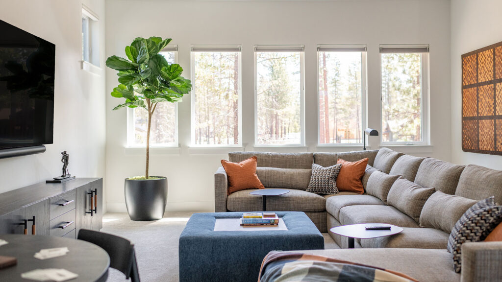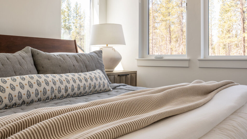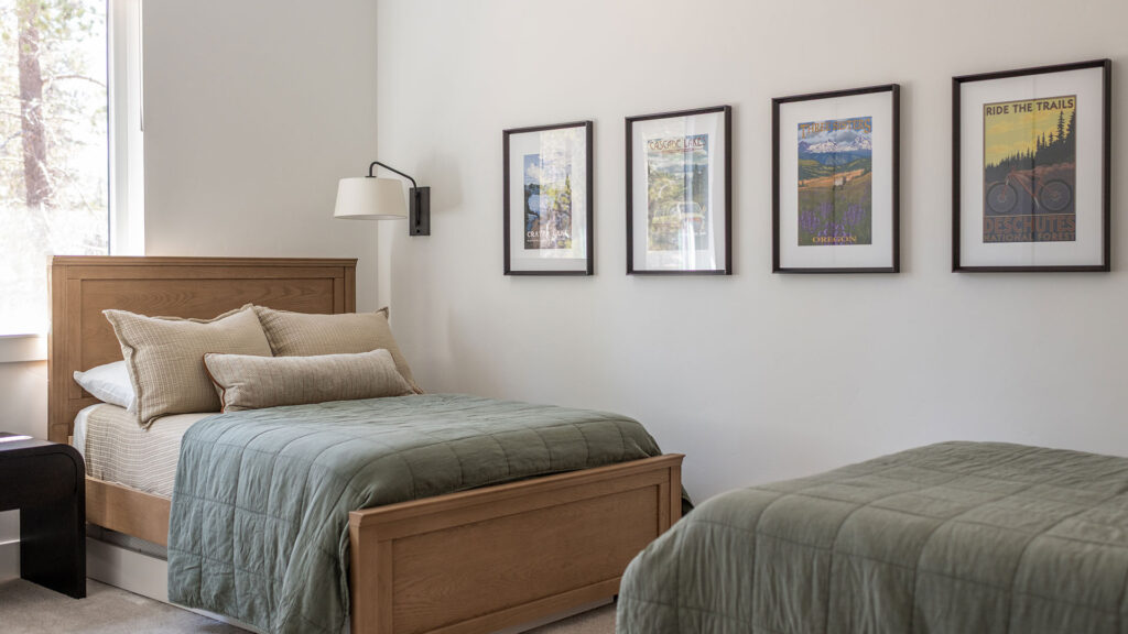 Layered in warm, natural tones, this newly furnished home in Bend’s Caldera Springs neighborhood is a welcome retreat for our clients, their family and friends.